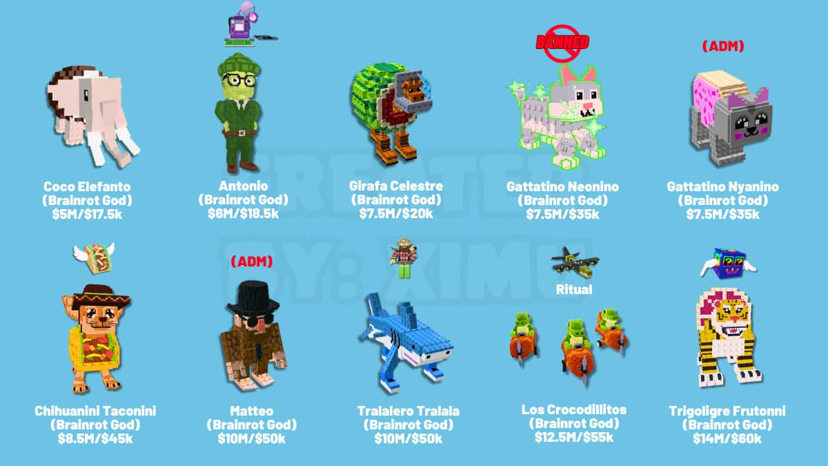 Here you will find all the details about Brainrots, how much they cost, how to obtain them, and interesting facts.