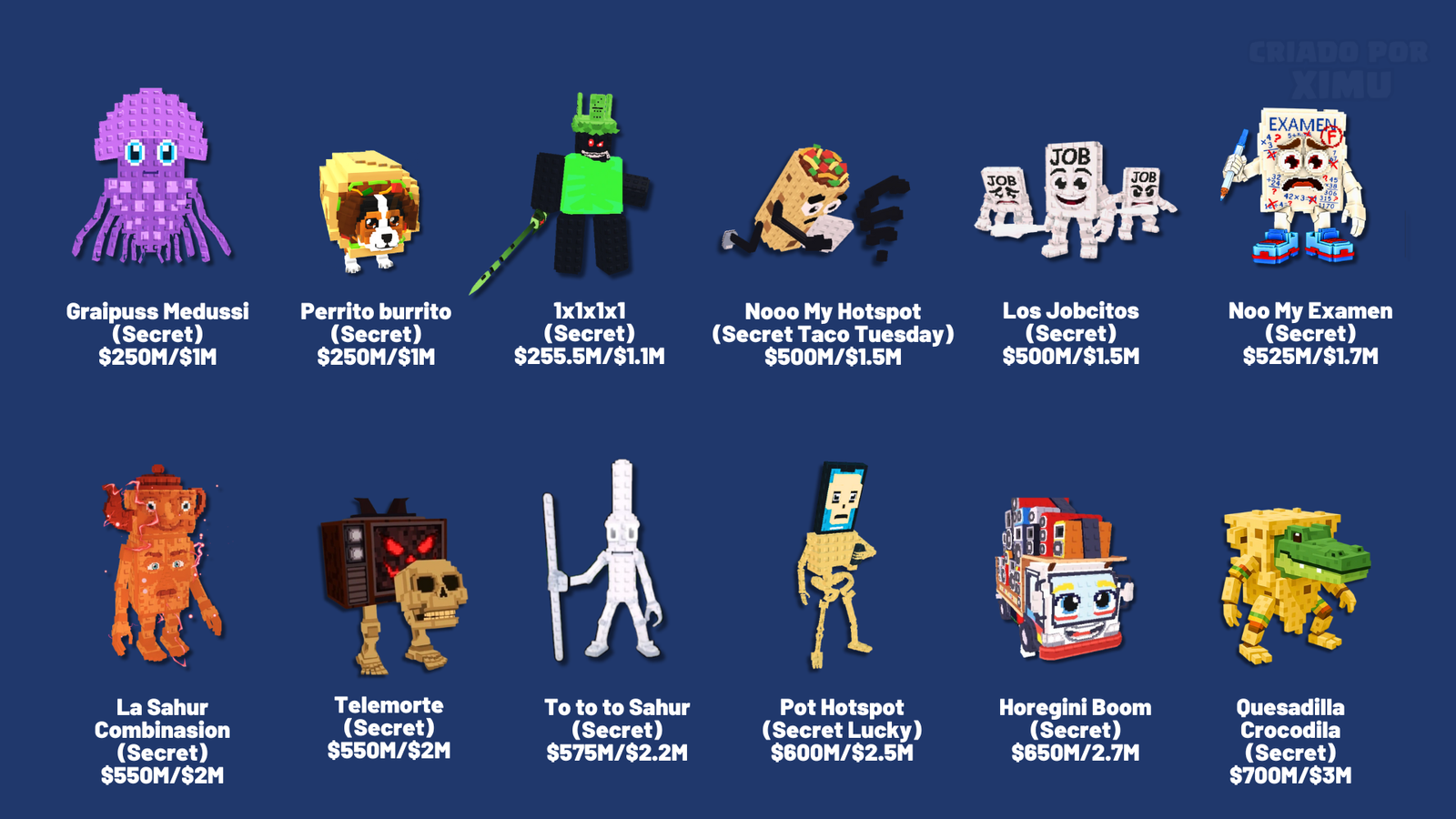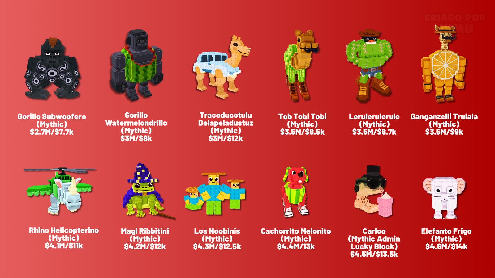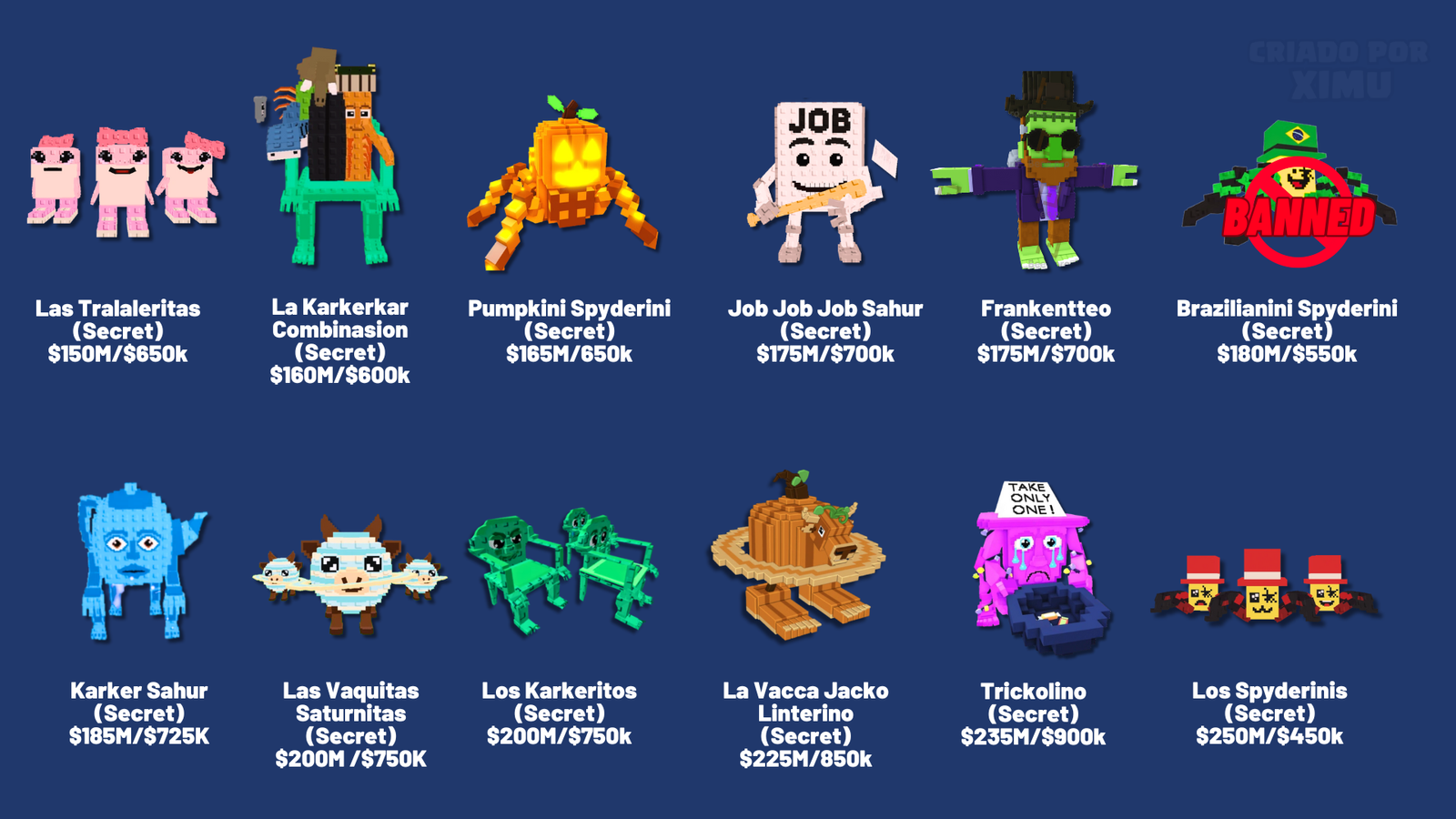 Here you will find all the Brainrots in the game! If any are missing, check the main page to see the recently added ones. (Link at the bottom of the page)