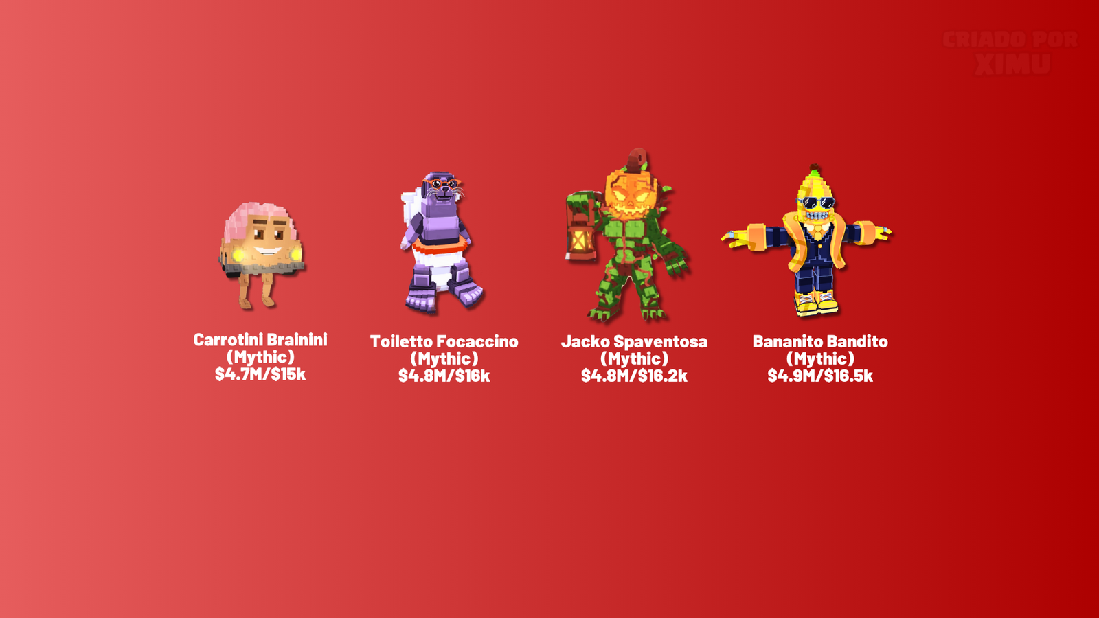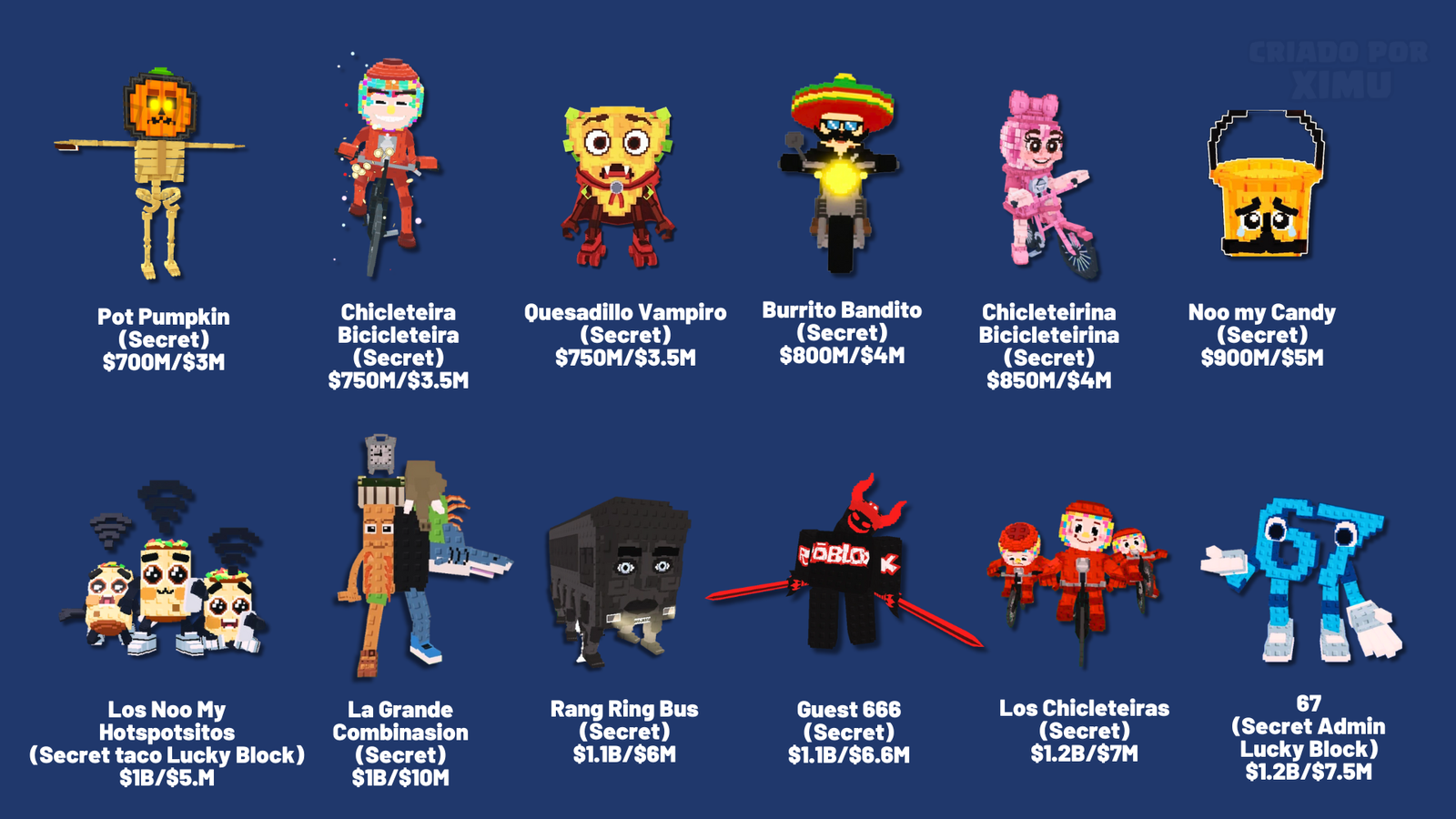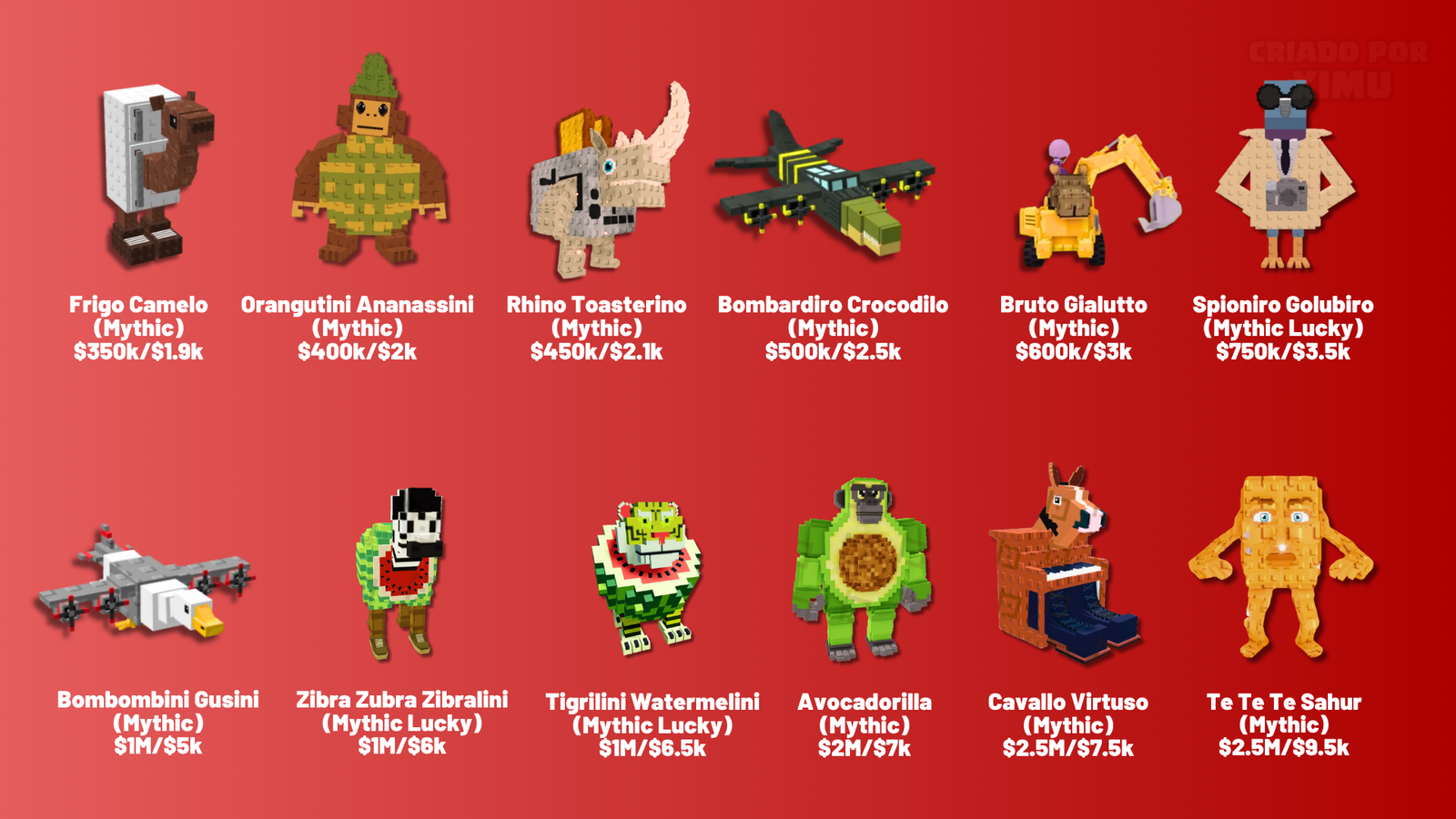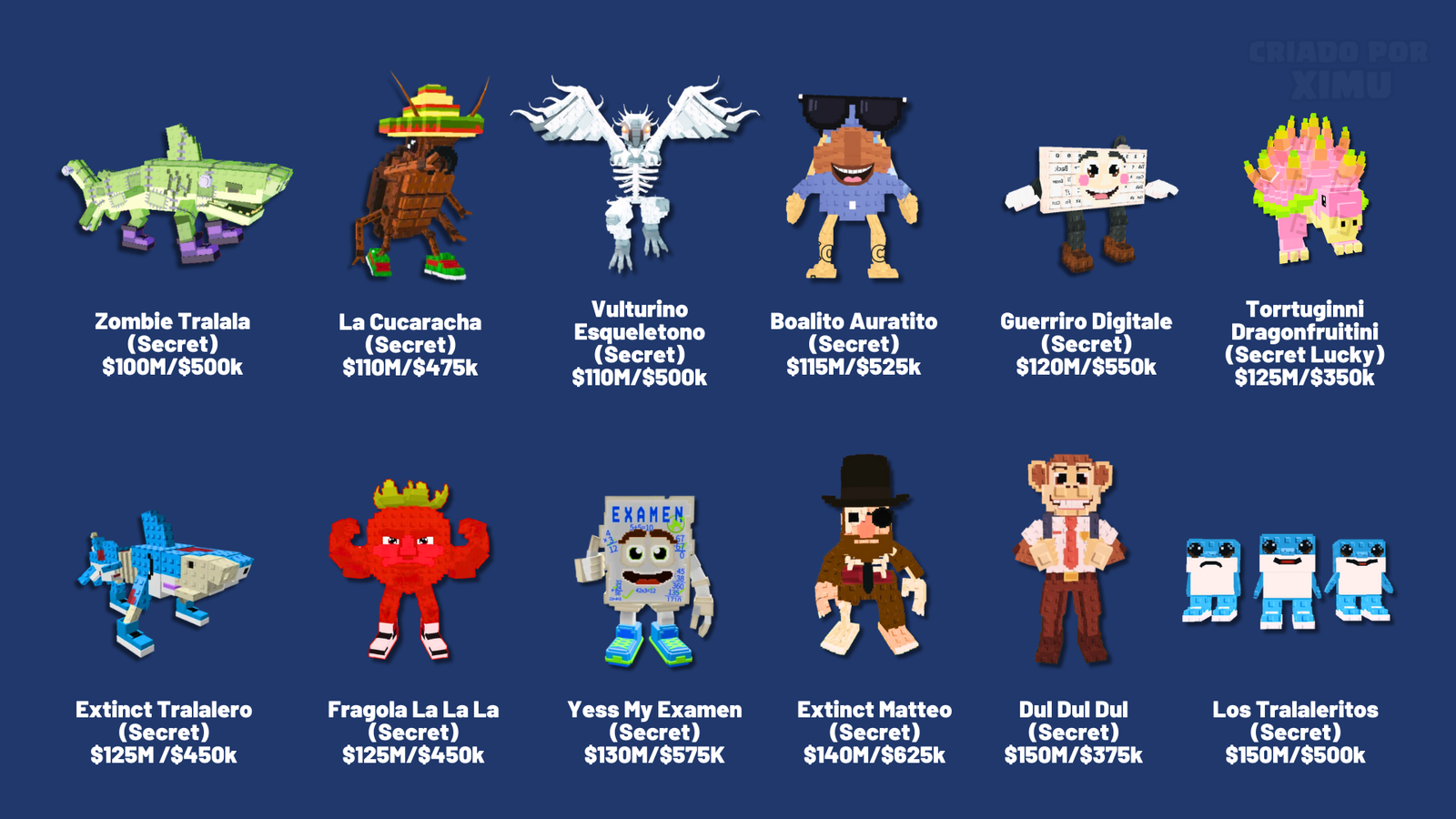 Here you will find all the Brainrots in the game! If any are missing, check the main page to see the recently added ones. (Link at the bottom of the page)