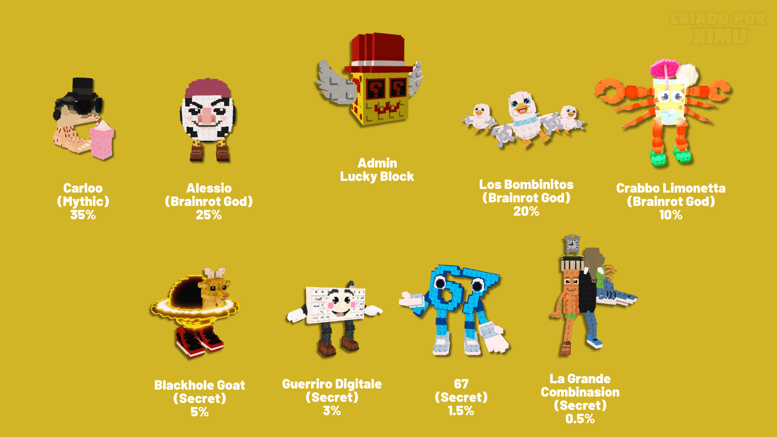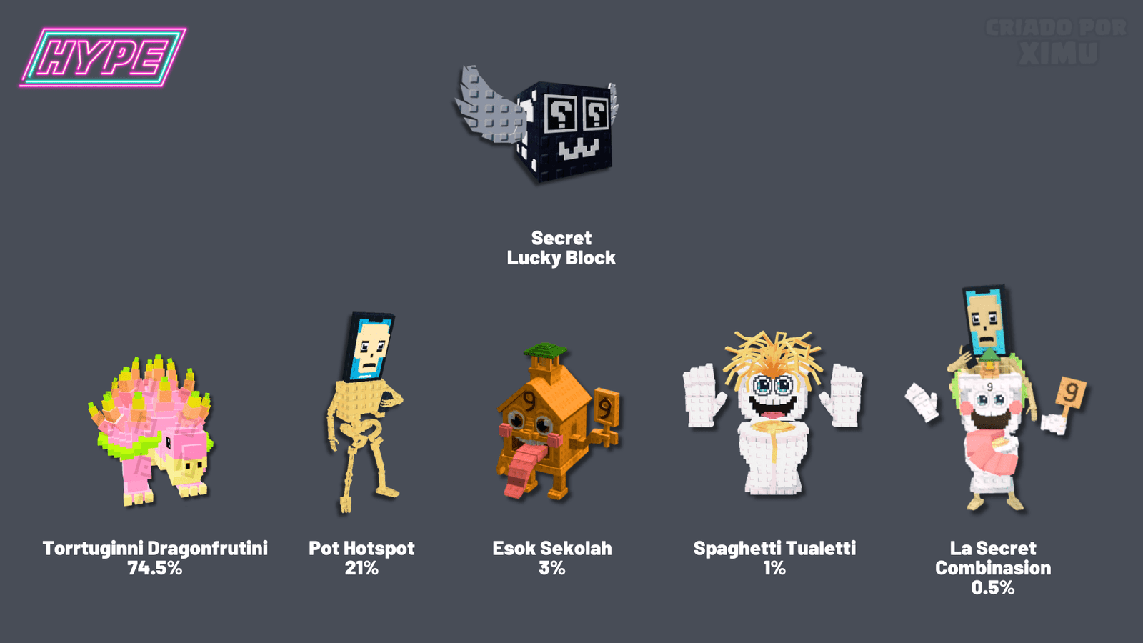 Five different Brainrots can appear in the Secret Lucky Block.