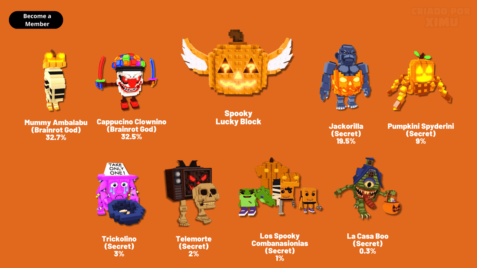 Discover what the odds are of finding Brainrots in Spooky Lucky Block.