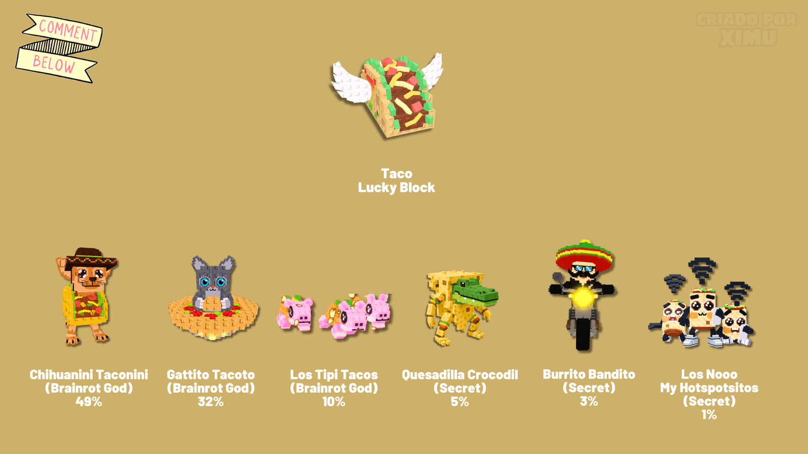 Six different Brainrots can appear in the Taco Lucky Block.