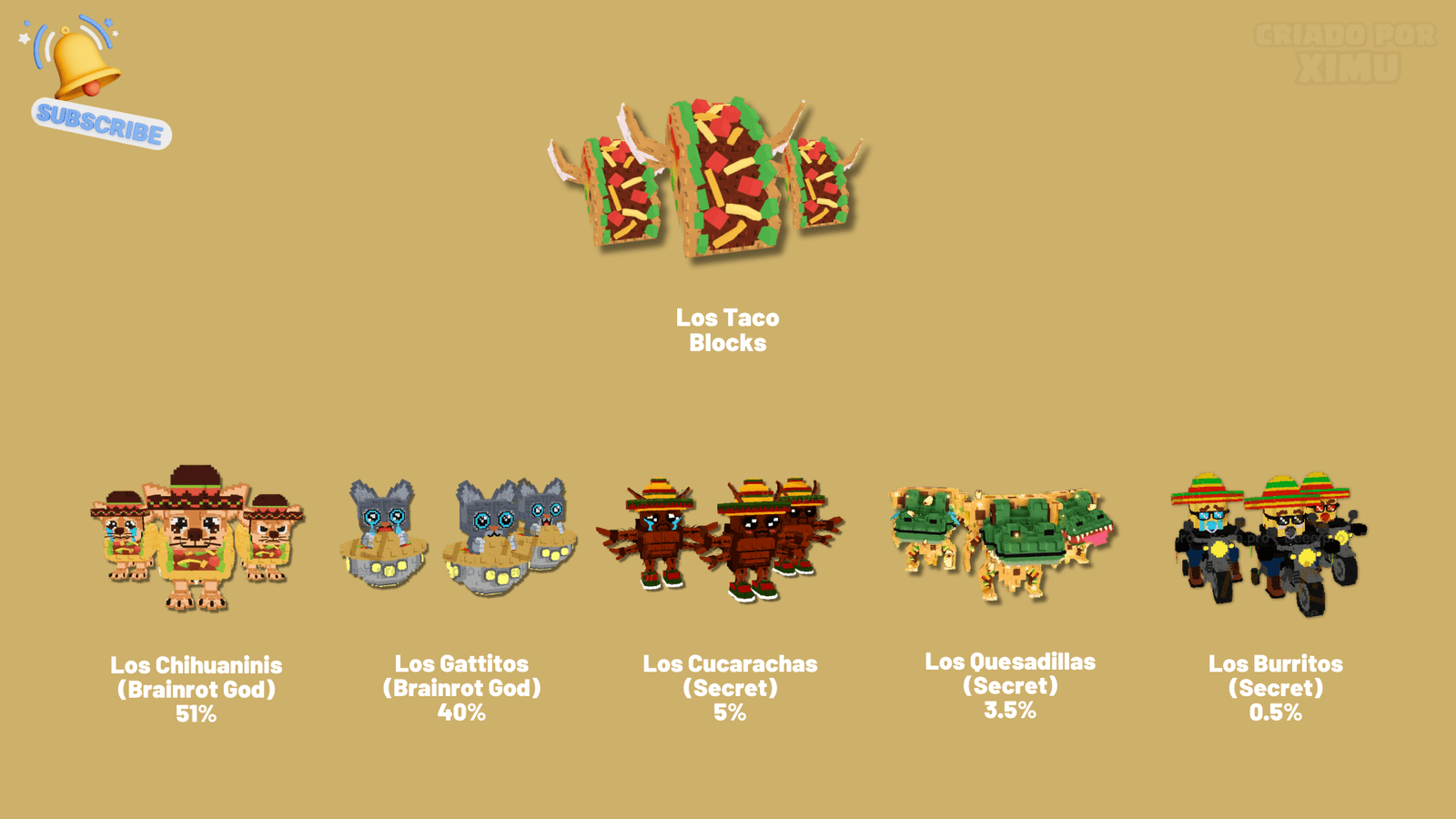See what the odds are of finding Brainrots in Los Taco Blocks.
