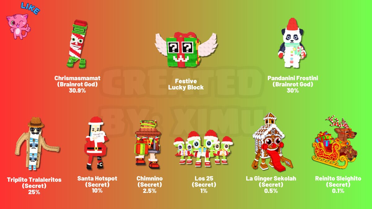 Learn what the odds are of finding Brainrots in Secret Lucky Block.