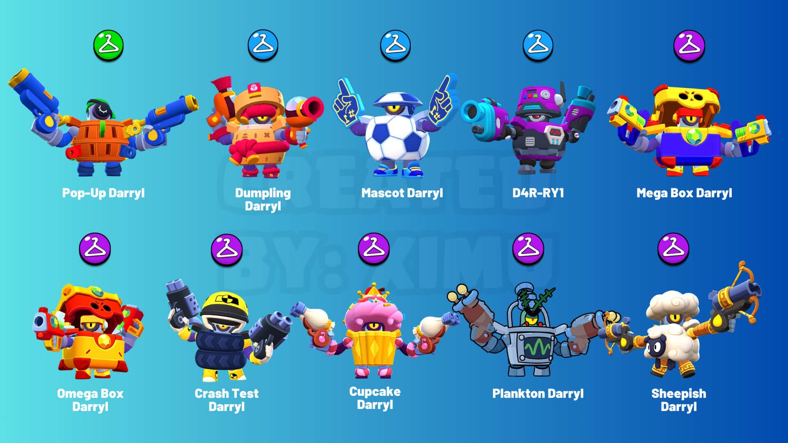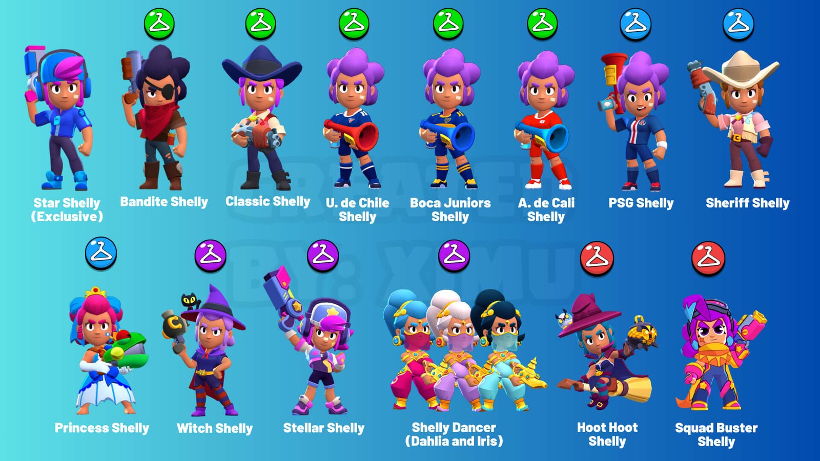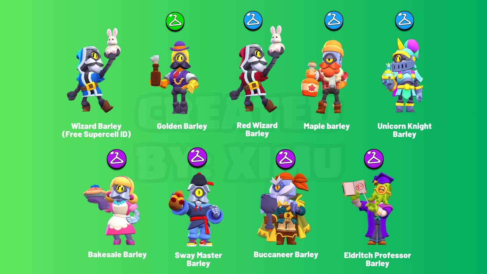 -Only 2 skins are not rare, which are Star Shelly and Wizard Barley. They are not rare because they are unique. Shelly is the first skin in Brawl Stars, and Barley is redeemed by creating a Supercell ID account.