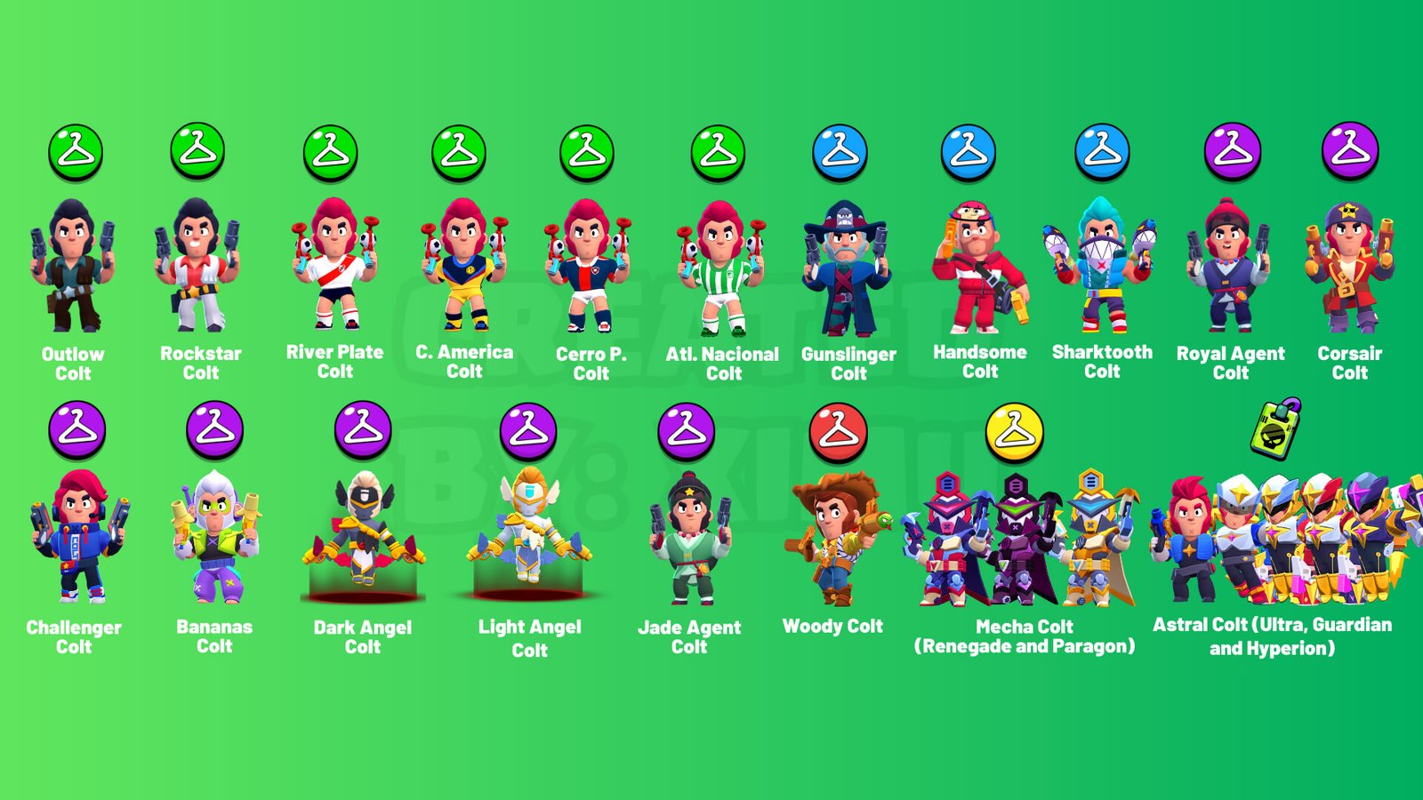 -Colt is the Brawler with the most skins currently, which is 25 skins.