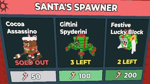 We also have Santa’s spawner, a notice board where we can buy Brainrots.