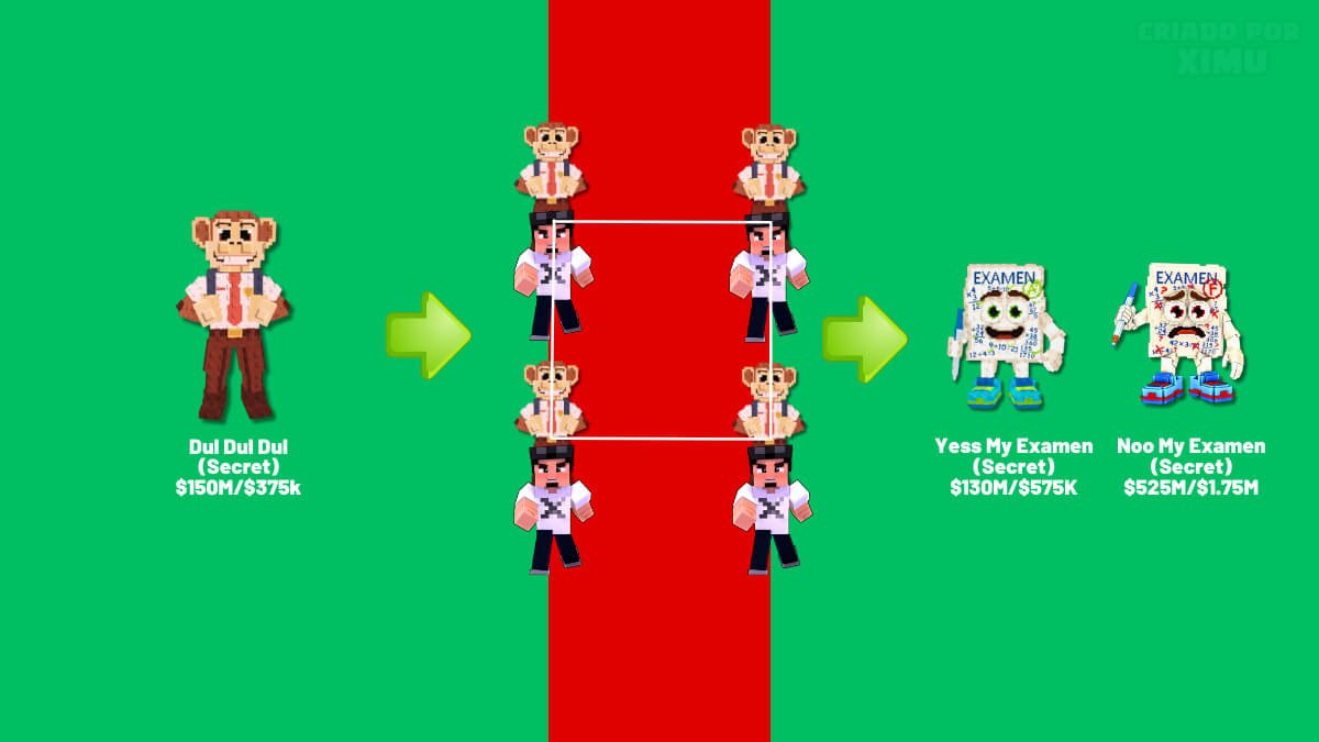 In the Dul Dul Dul Ritual, we can obtain 2 different Brainrots depending on luck, but the way to perform it is unique; We need to form a square for the ritual to be completed, thus generating either Yess my Examen or Noo my Examen.